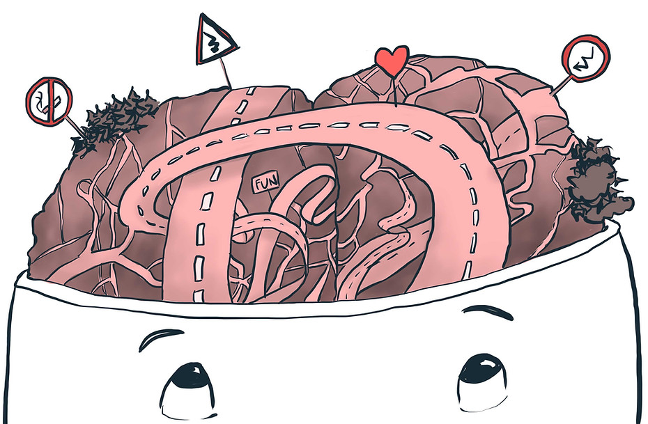 Im Gehirn gibt es Milliarden von Nervenzellen, die miteinander verknüpft sind. Du kannst dir das Ganze als ein dichtes Netz aus Strassen vorstellen: Es gibt Autobahnen, Haupt- und Nebenstrassen, aber auch Pfade, die so selten begangen werden, dass sie durch dichten Dschungel führen.